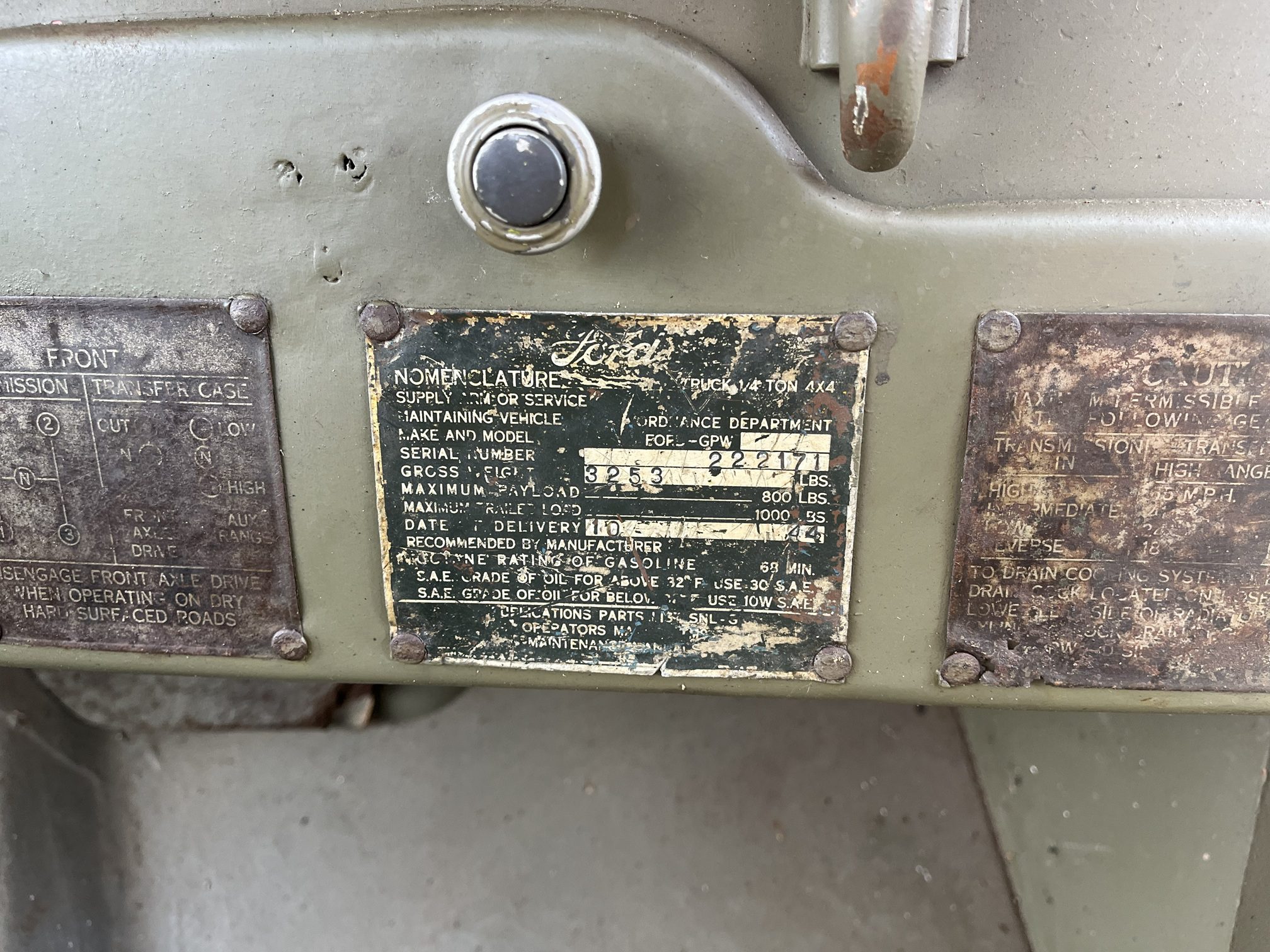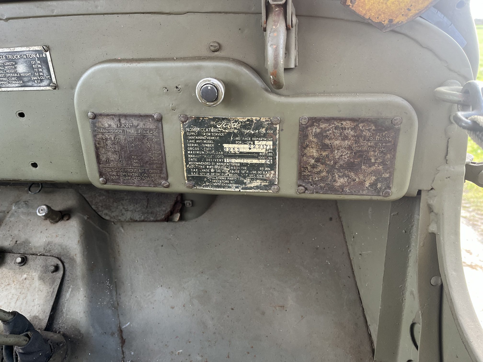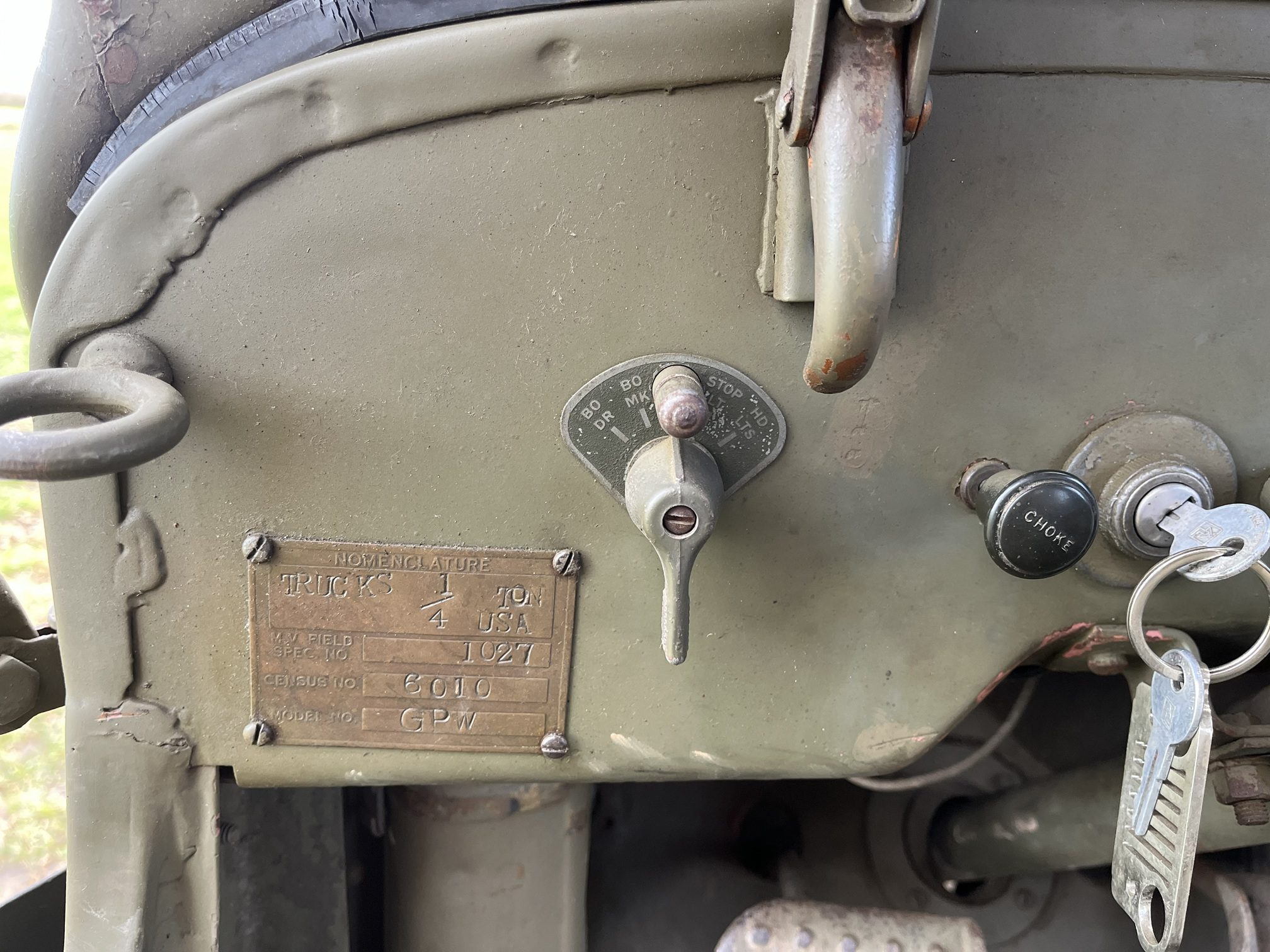 Rare “matching” Jeep with matching original production plate, chassis, and engine numbers.