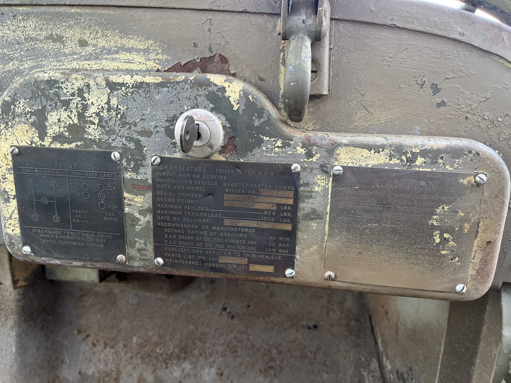 Jeep produced under the “BRT” contract for the British Army. Original registration number still visible on the hood.