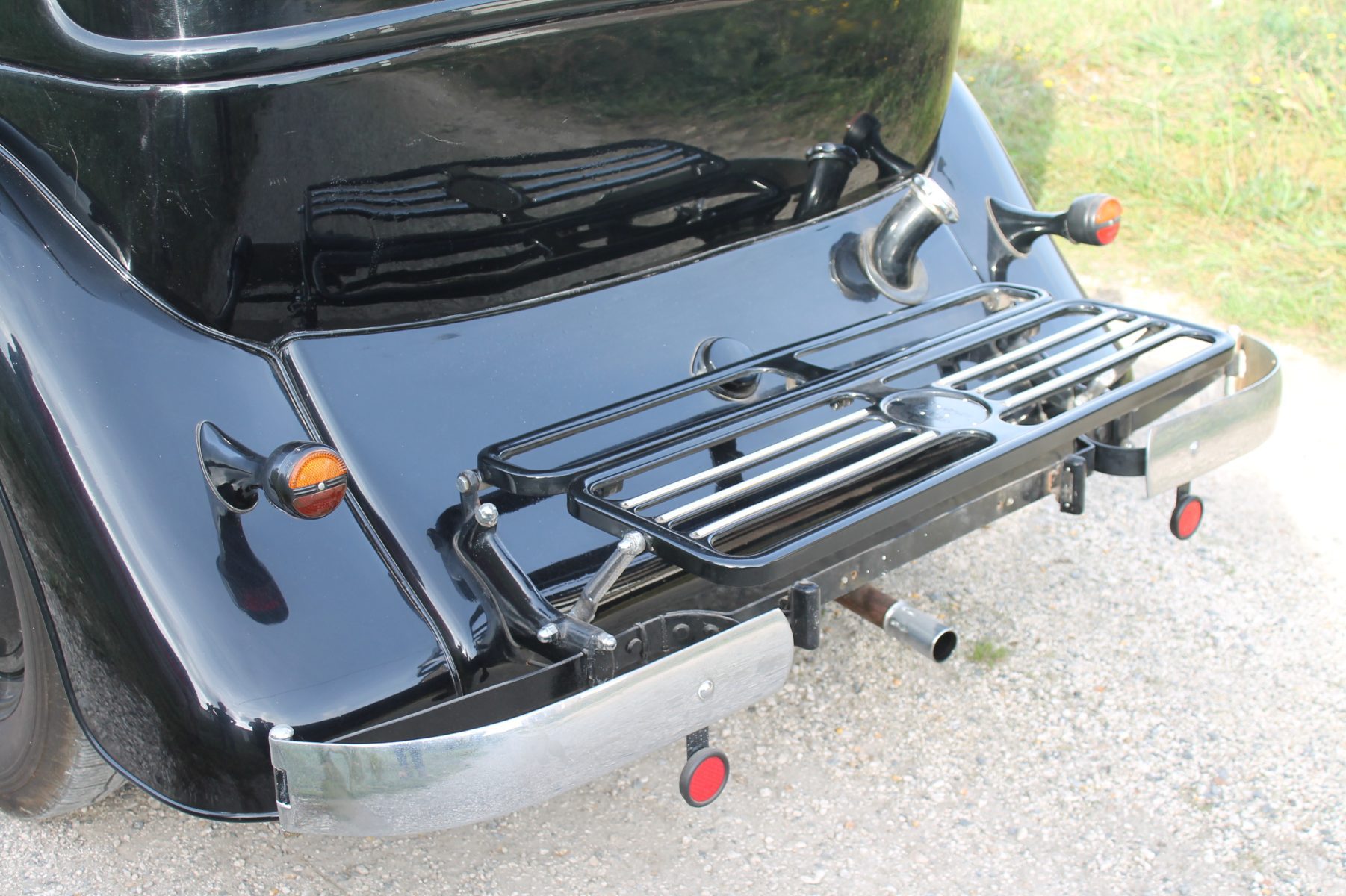 En service dans un grand hôtel de la côte d’azur, sur la Riviera d’avant-guerre, elle fût redécouverte dans les années 70 en région parisienne par un célèbre carrossier spécialisé dans les automobiles de cette époque et grand collectionneur. En mauvais état mais complète, l’imposante berline fut confiée à ses ateliers de restaurations. Le projet de remise en état fut mené en conservant toutes les pièces d’origines spécifiques de sa production.