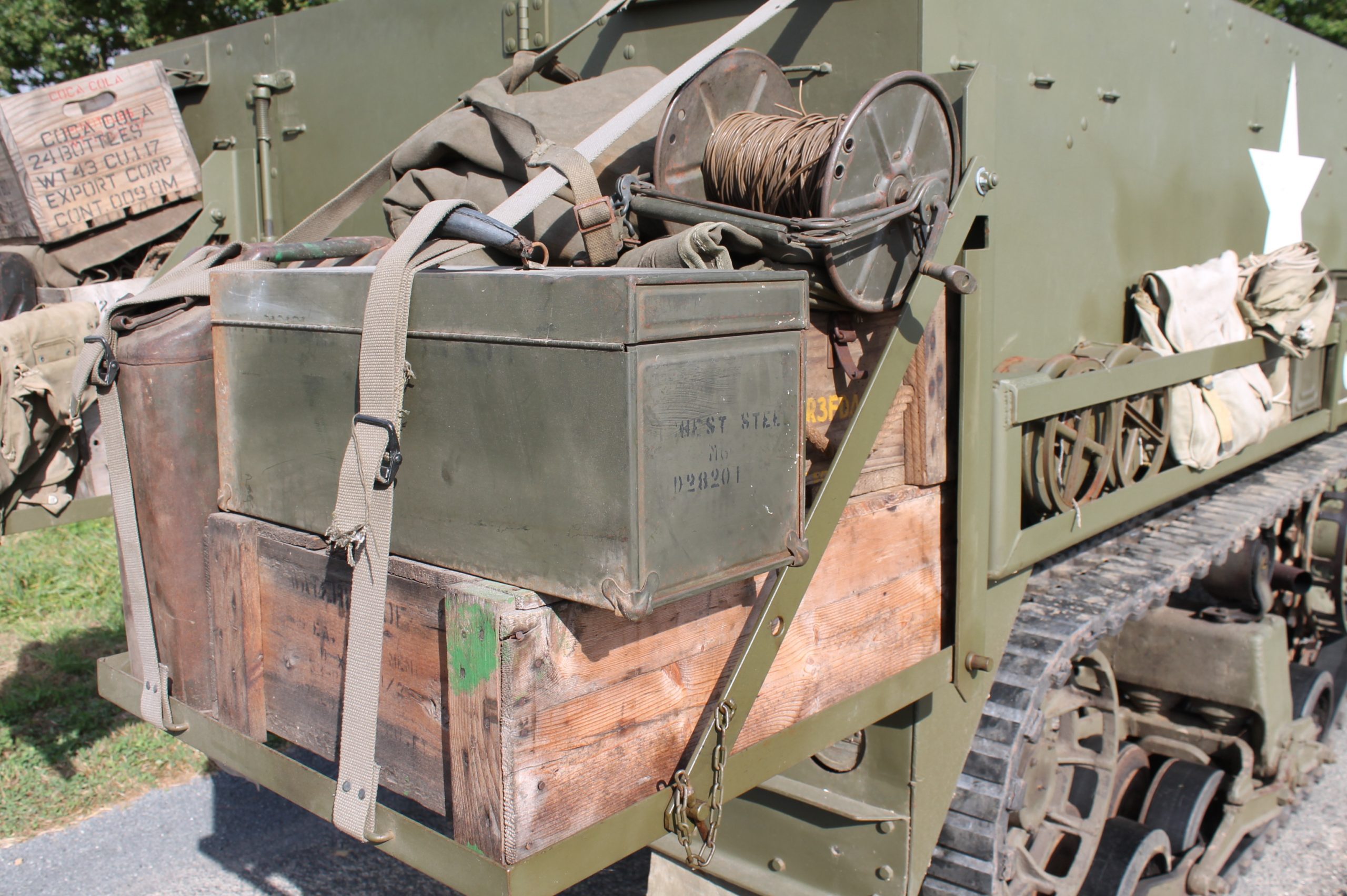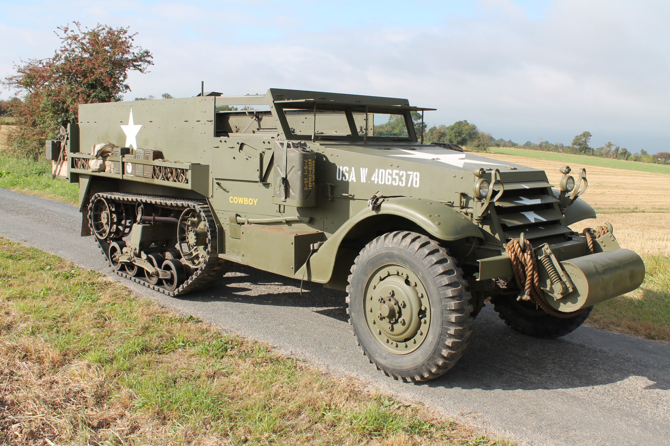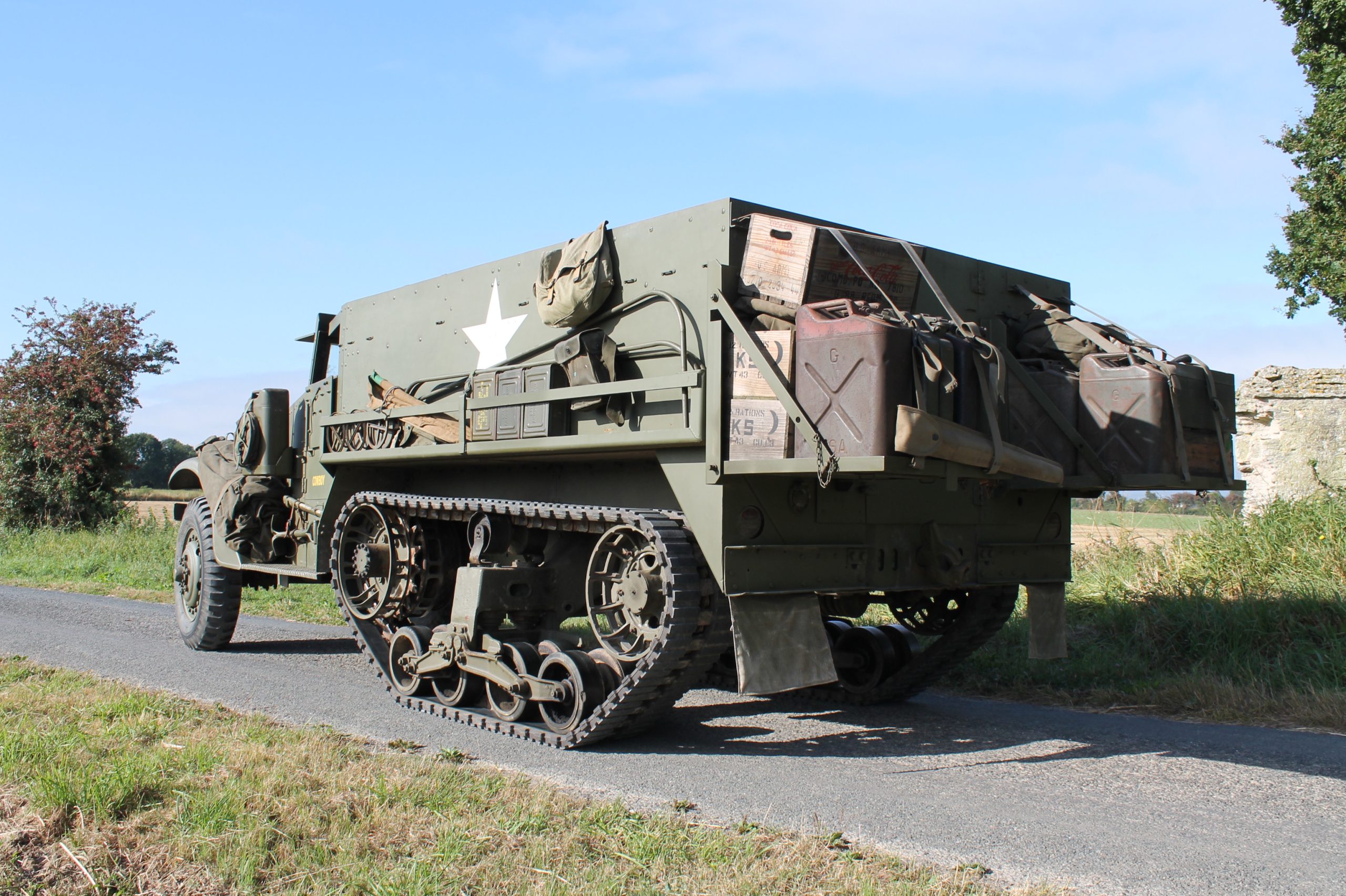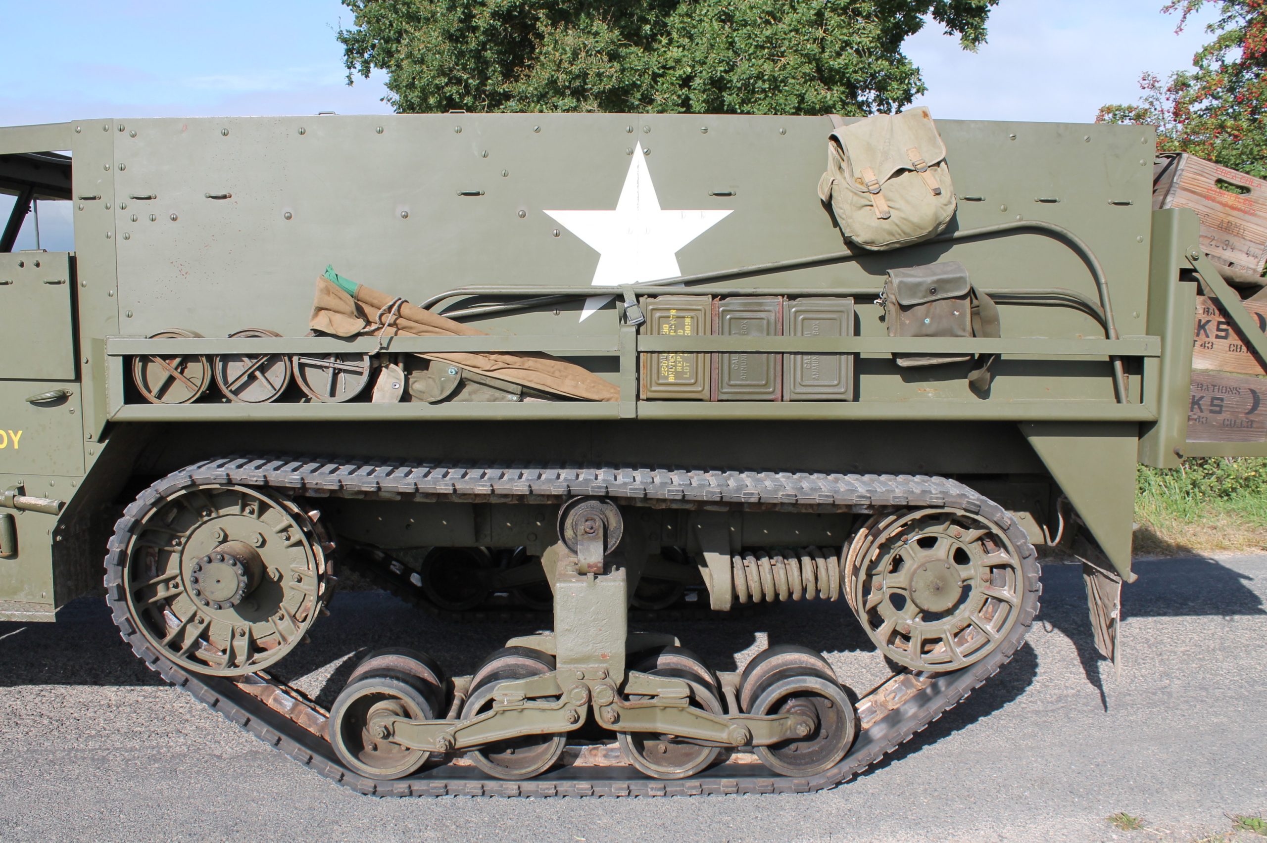 Le M3 est le modèle standard utilisé pour le transport de 12 gi’s , on remarquera, comme a l’origine, le rajout des racks latéraux et arrières permettant le stockage complémentaire de matériel, l’ensemble des équipements présent sur les photos seront vendu avec le Half-Track. Provenant des stocks de l’armée Française, ce M3 avait été remis totalement dans sa configuration d’origine de l’Us Army. Les pneumatiques military US et un train de chenille neuf avaient été installés.